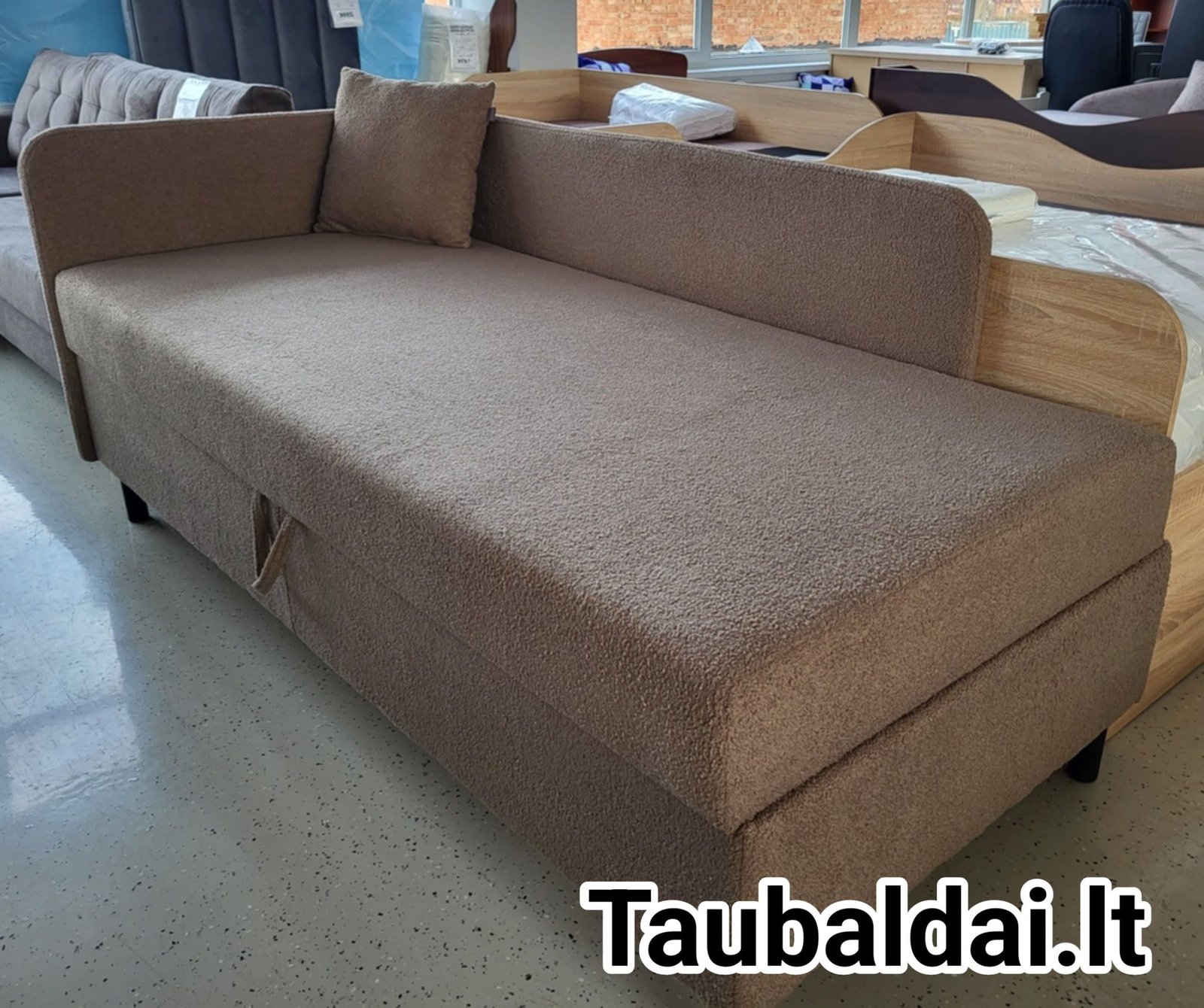 Patogi ir funkcionali sofa-lova su miegojimo mechanizmu bei daiktadėže. Puikus pasirinkimas svetainei ar mažoms erdvėms. Pagaminta Lietuvoje.